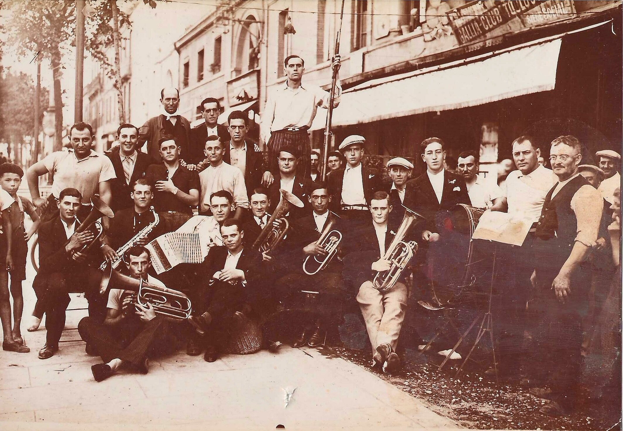 Photo historique de joueurs de rugby à XIII, devant le Bistrô XIII, anciennement Gallia-Club · 1936